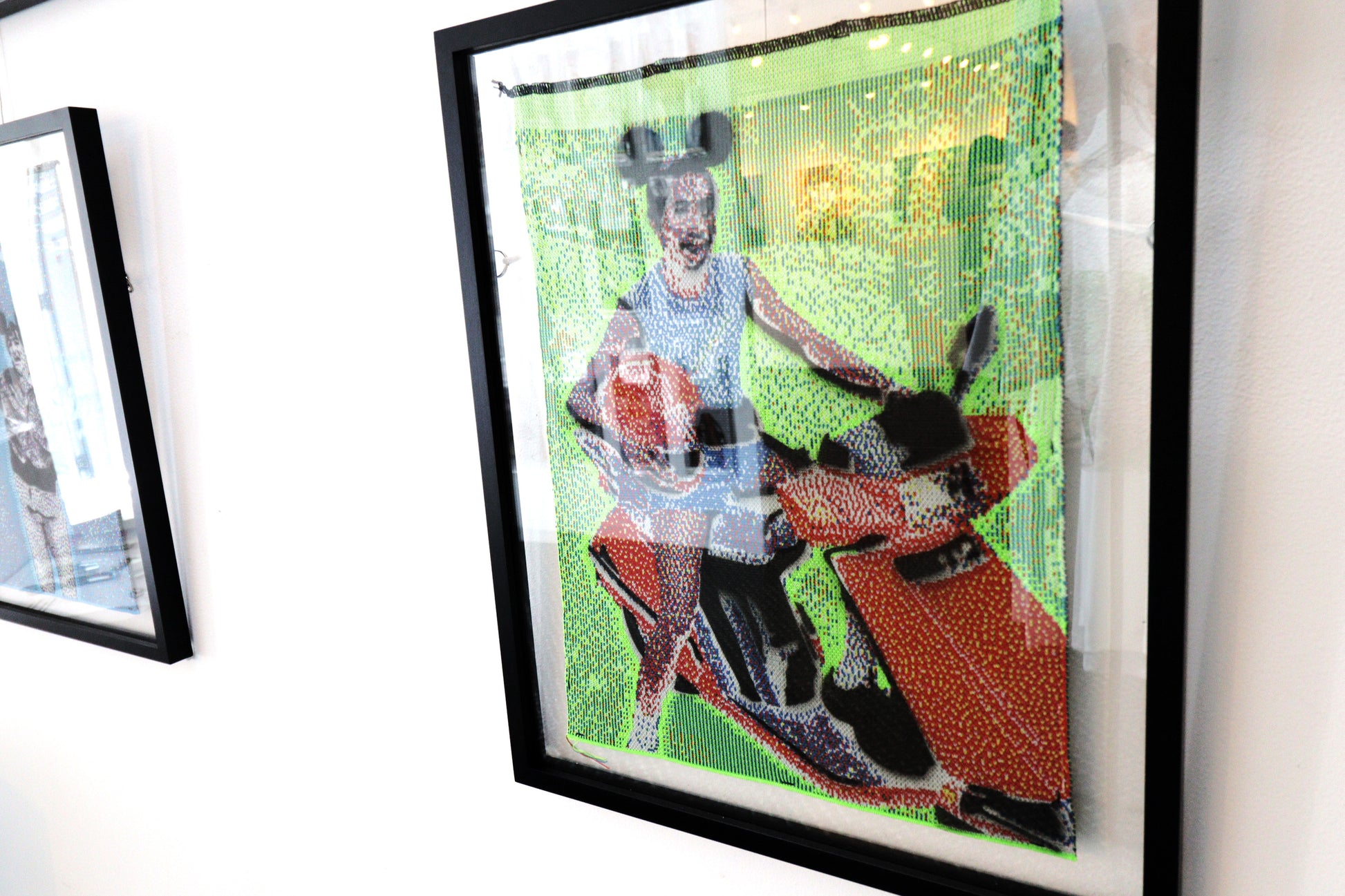Sampling and expressing in works the period of change from analog to digital that I, as a teenager, have just experienced from the 90's to the early 00's. The work expresses digitally created graphics with analog knitwear, and knitwear created in analog looks like digital.