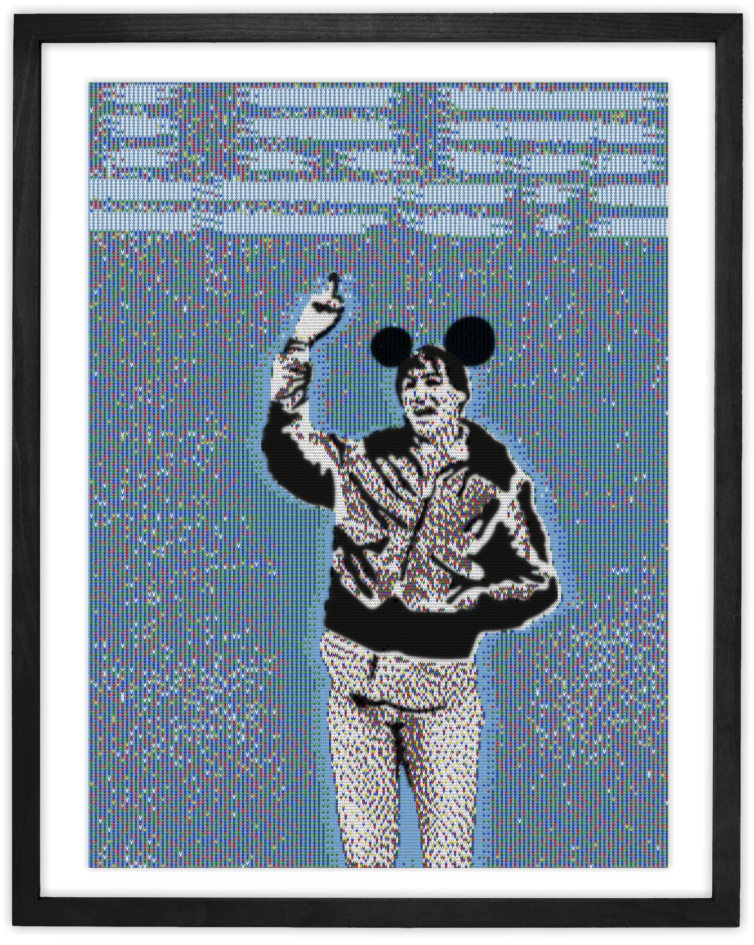 Sampling and expressing in works the period of change from analog to digital that I, as a teenager, have just experienced from the 90's to the early 00's. The work expresses digitally created graphics with analog knitwear, and knitwear created in analog looks like digital.